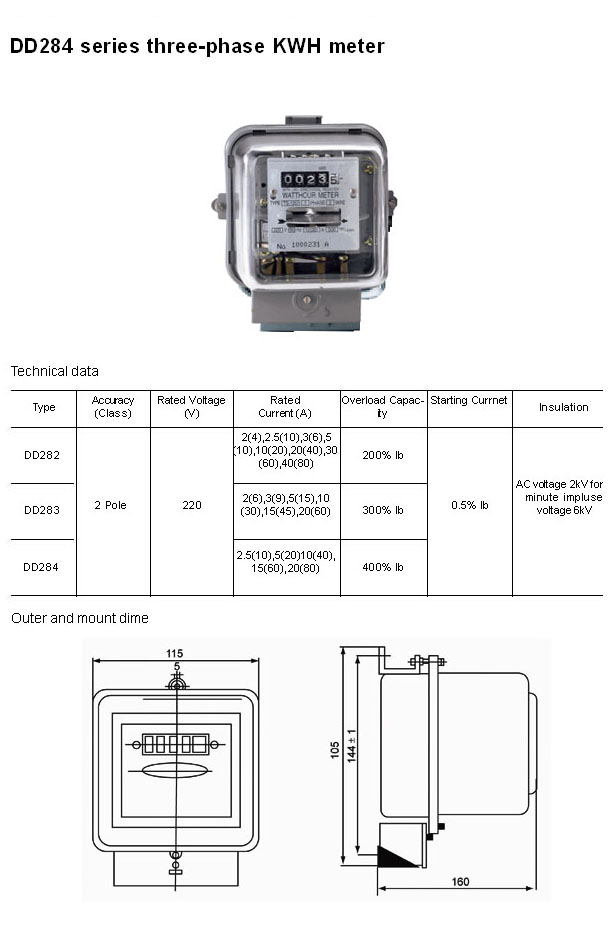 - DD284 Series Three-Phase KWH Meter