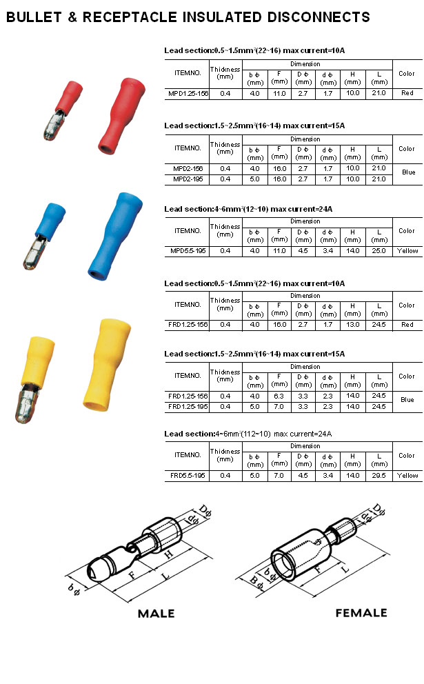 - Bullet & Receptacle Insulation Disconnect