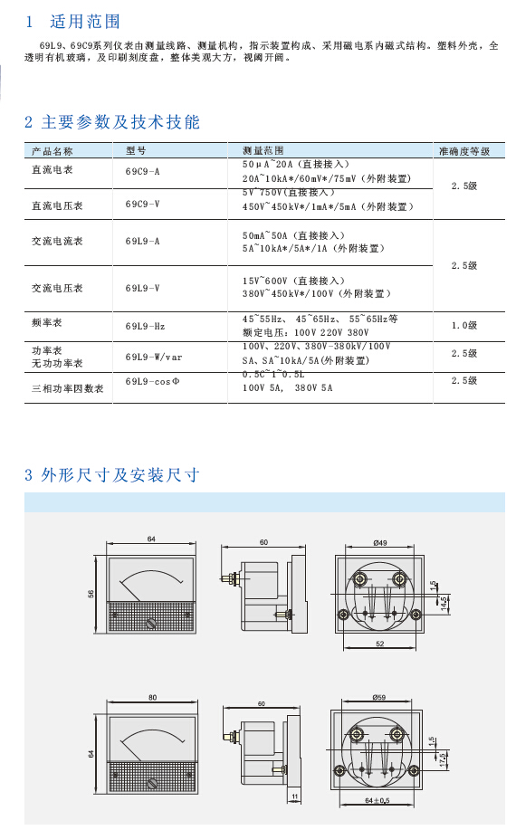 69L9、69C9系列电流表电压表