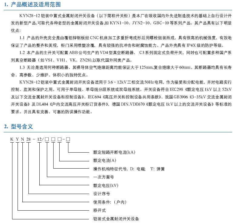 KYN28-12户内交流金属铠装中置式开关设备